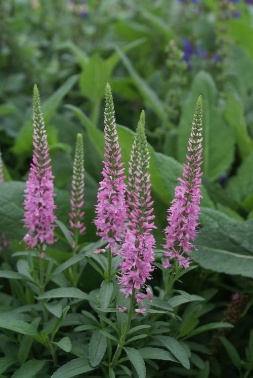 Dwarf clump with spikes of bright rosy-pink flowers. Blooms summer until frost.